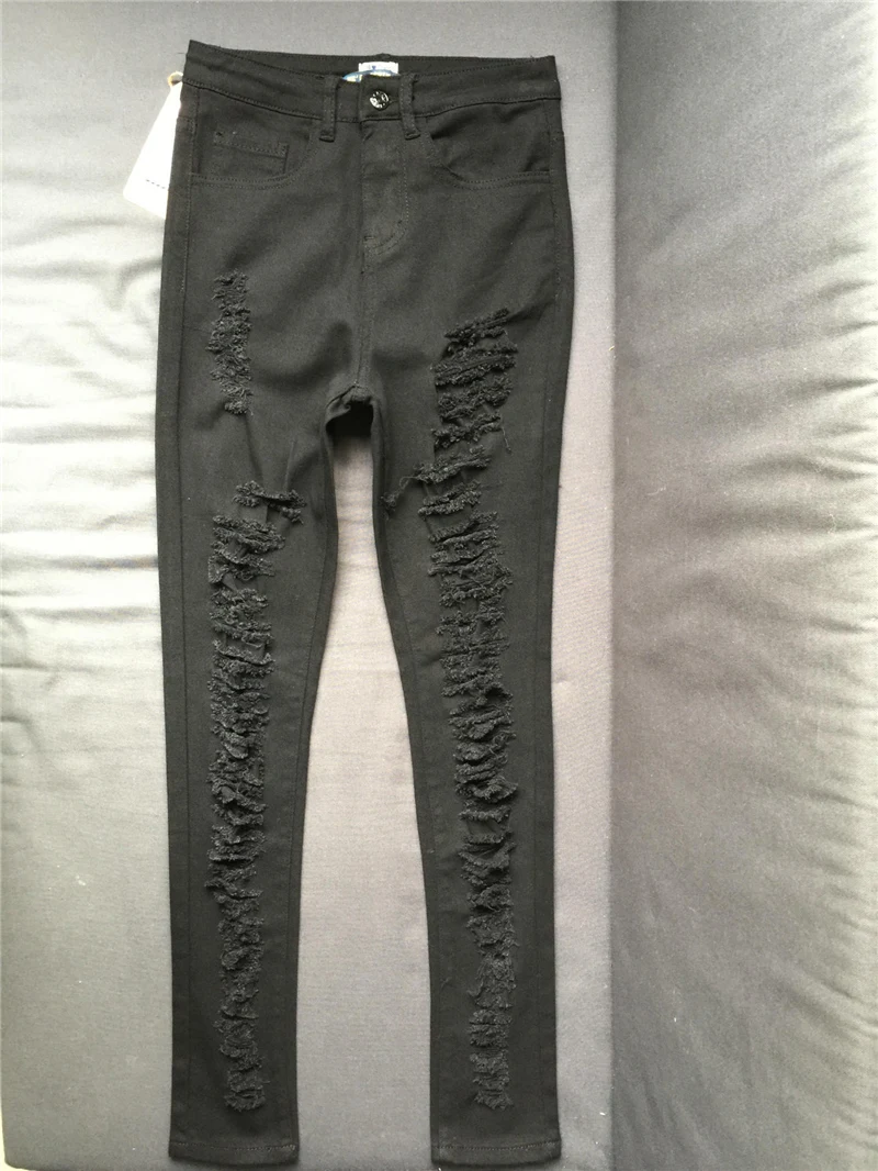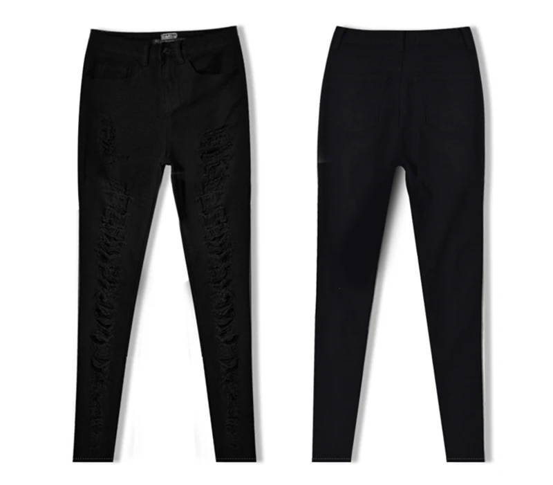 Ripped Jeans For Women Black Ripped Jeans Sexy Distressed Jeans Skinny High Waist Elastic Pencil Denim Trousers