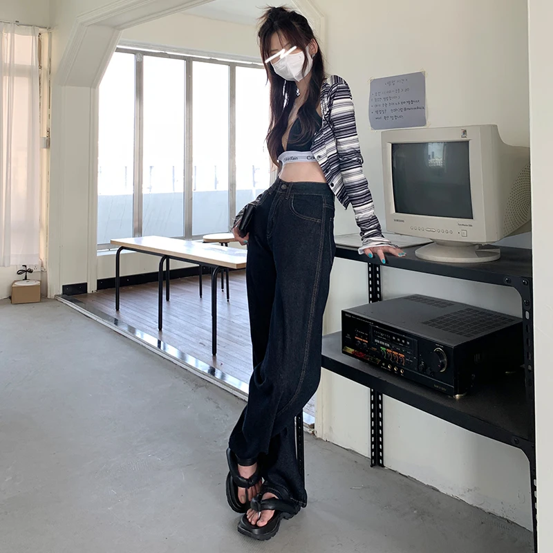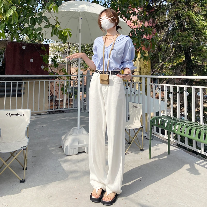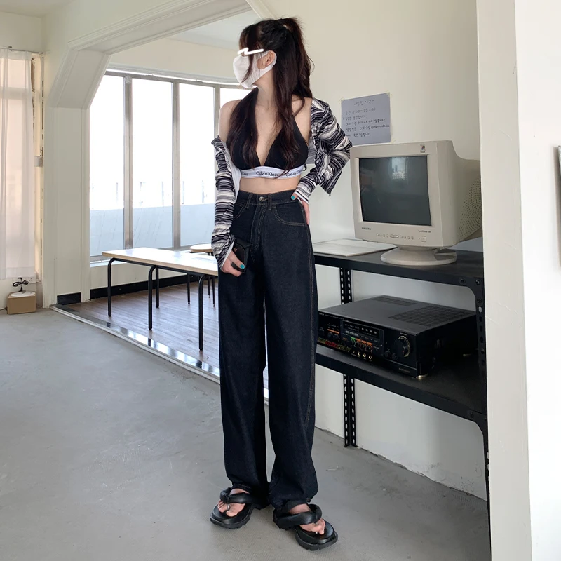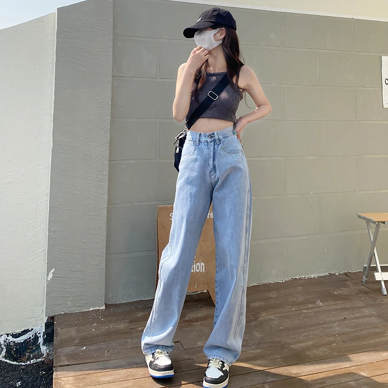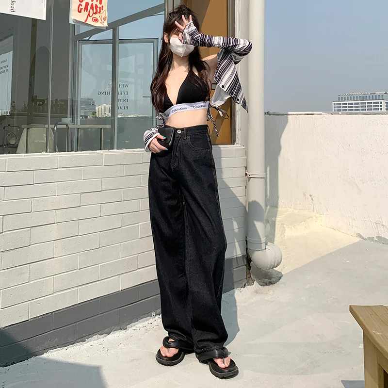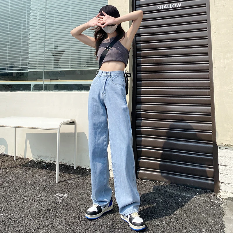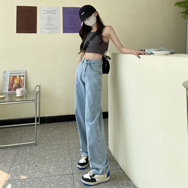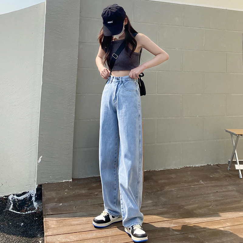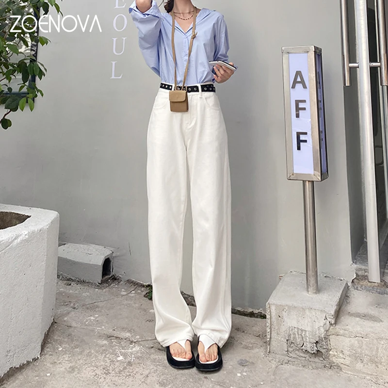 ZOENOVA Jeans Women Elegant Casual Stretch High Waist Straight Wide Leg Denim Pants Streetwear Korean Fashion Female Choting